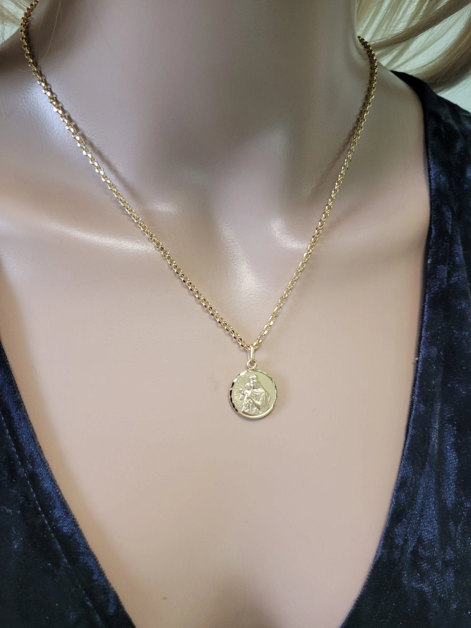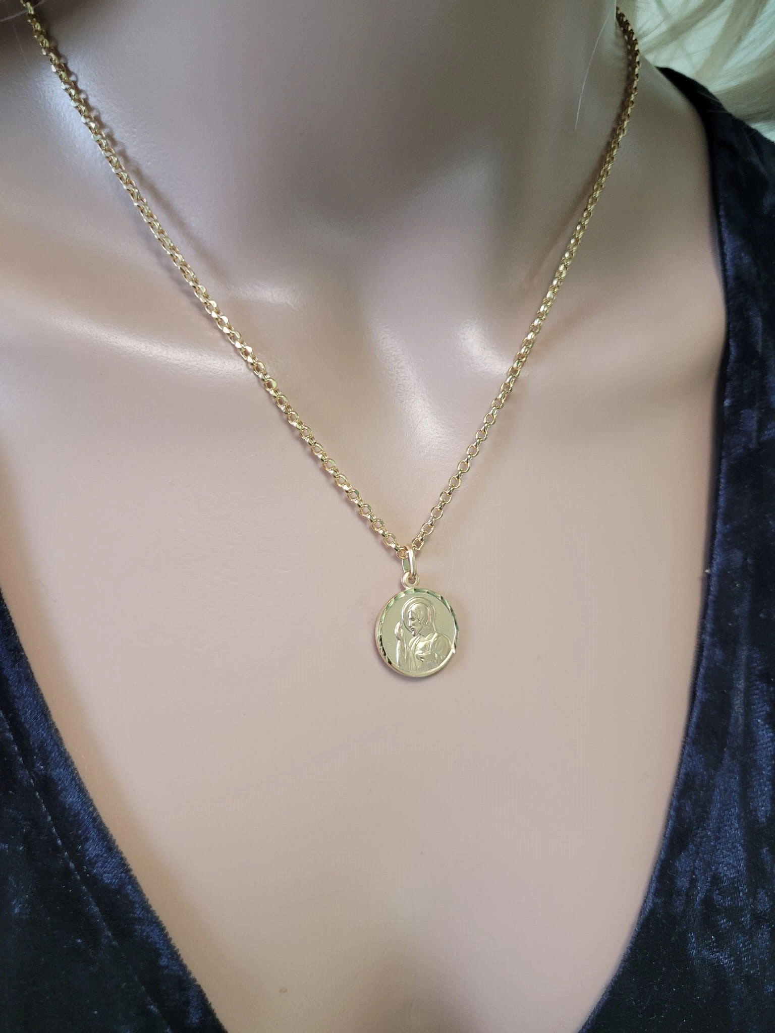 Šis išskirtinis geltono aukso medalikėlis yra ne tik puošnus papuošalas, bet ir gilus tikėjimo simbolis, sukurtas su meile ir preciziškumu. Pagamintas iš aukščiausios kokybės 585 prabos aukso, jis spinduliuoja šiluma ir elegancija, puikiai derančia prie bet kokios aprangos ir progos.