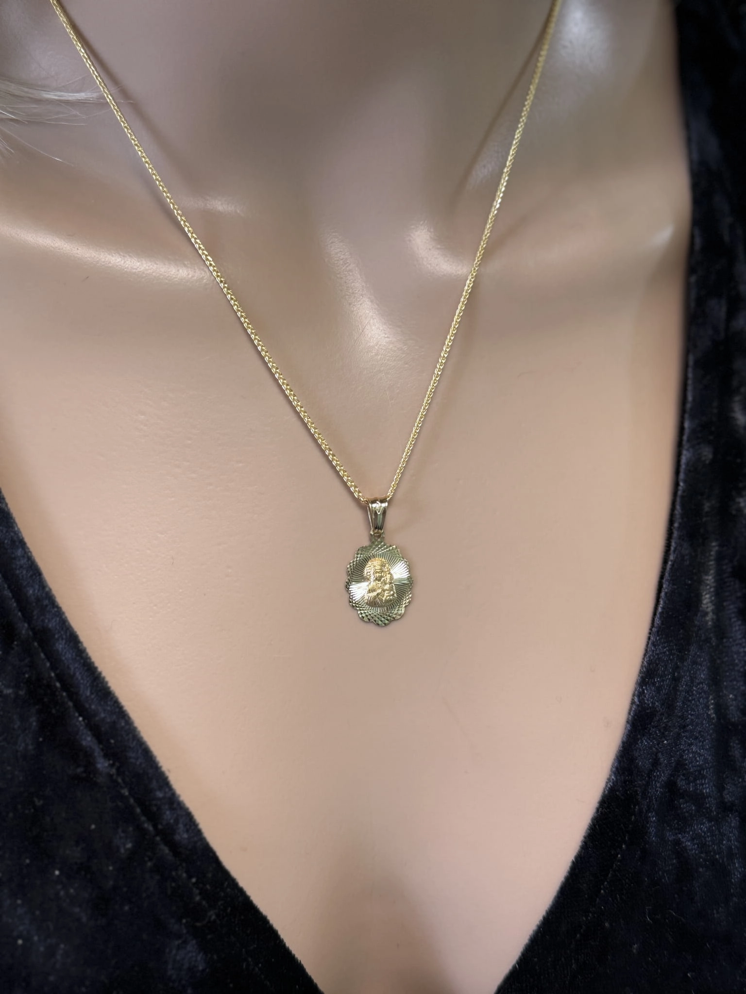 Pristatome Jums nuostabų geltono aukso pakabuką, kuris spinduliuoja ramybe ir elegancija. Šis pakabukas, vaizduojantis Švč. Mergelę Mariją su Kūdikiu, yra ne tik gražus papuošalas, bet ir gilus tikėjimo simbolis, puikiai tinkantis tiek kasdieniam nešiojimui, tiek ypatingoms progoms.