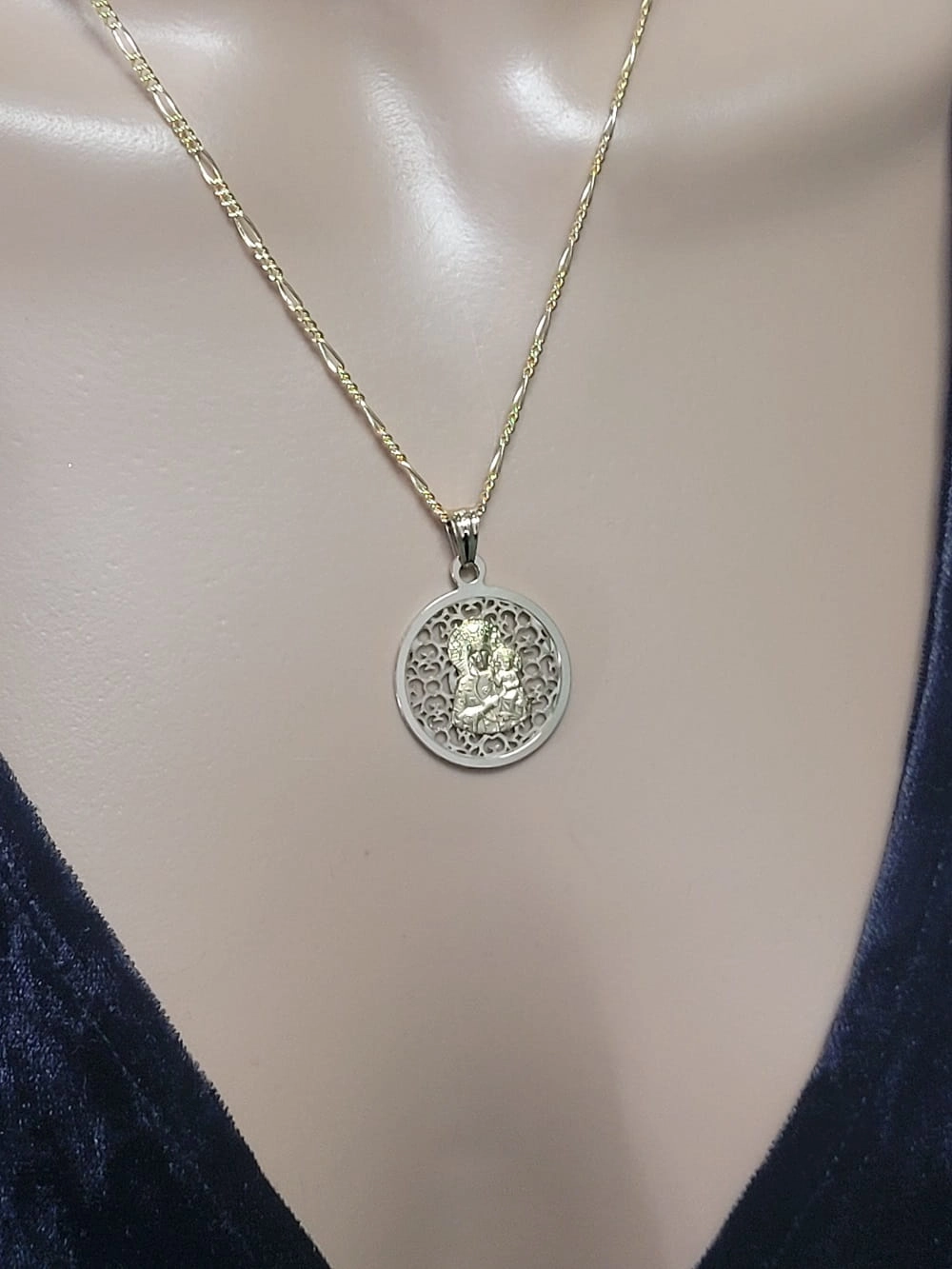 Kiekviena detalė šiame pakabuke atspindi juvelyrikos meistrų aistrą ir preciziškumą. Ažūrinis raštas, supantis Dievo Motinos atvaizdą, suteikia pakabukui subtilumo ir lengvumo, o kruopščiai išlietas atvaizdas spinduliuoja ramybe ir viltimi. Pakabuko matmenys – 2,1 cm ilgio ir 2,1 cm pločio – yra idealūs, kad jis būtų pastebimas, bet ne per daug įkyrus, puikiai tinkantis kasdieniam nešiojimui ar ypatingoms progoms.