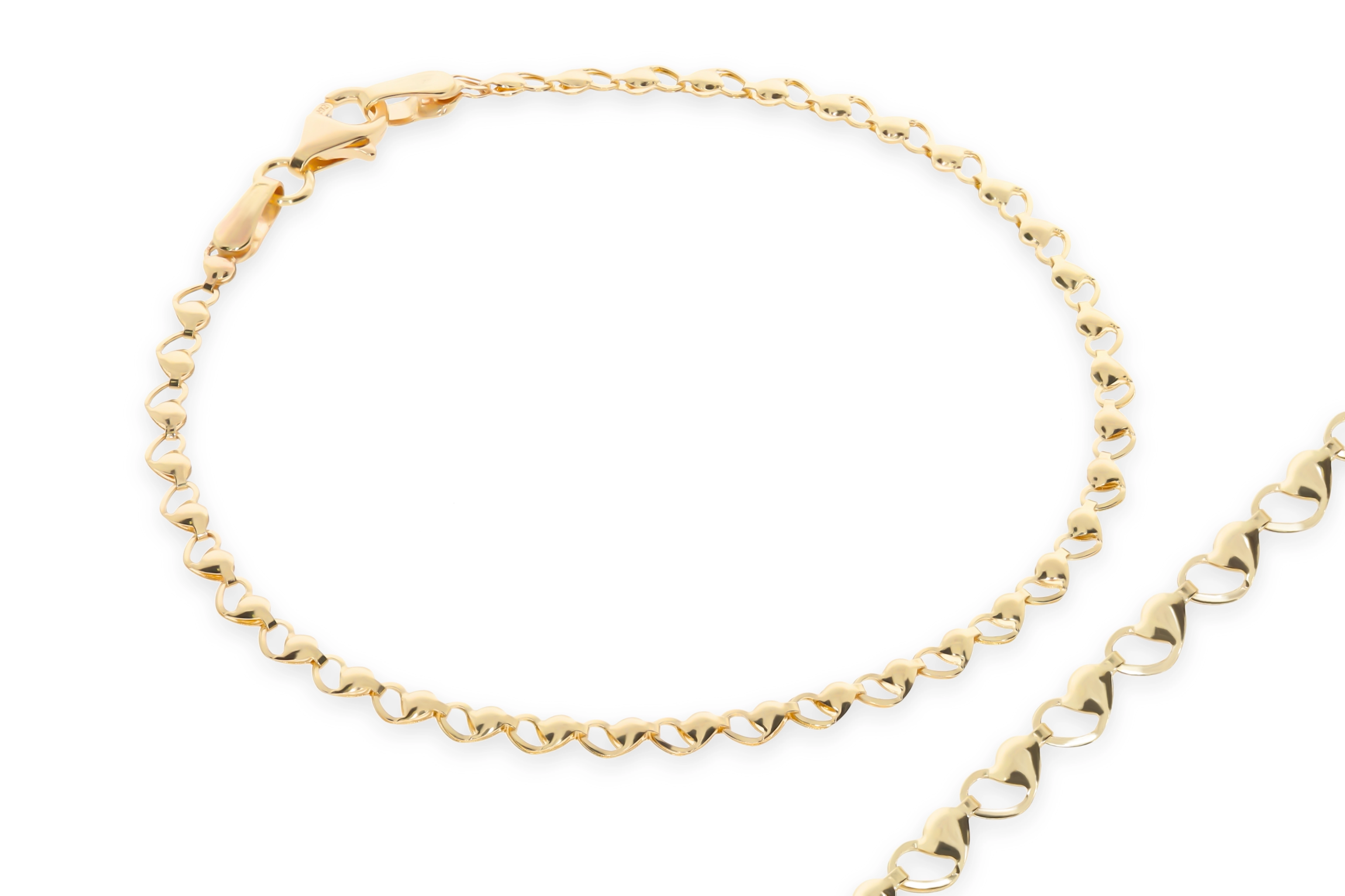Romantiška moteriška geltono aukso apyrankė su širdelėmis 585