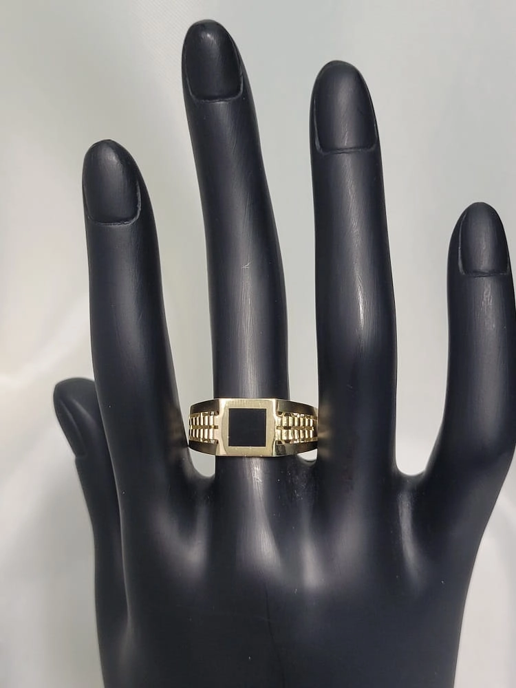 Stilingas vyriškas geltono aukso žiedas su juodu cirkoniu 585