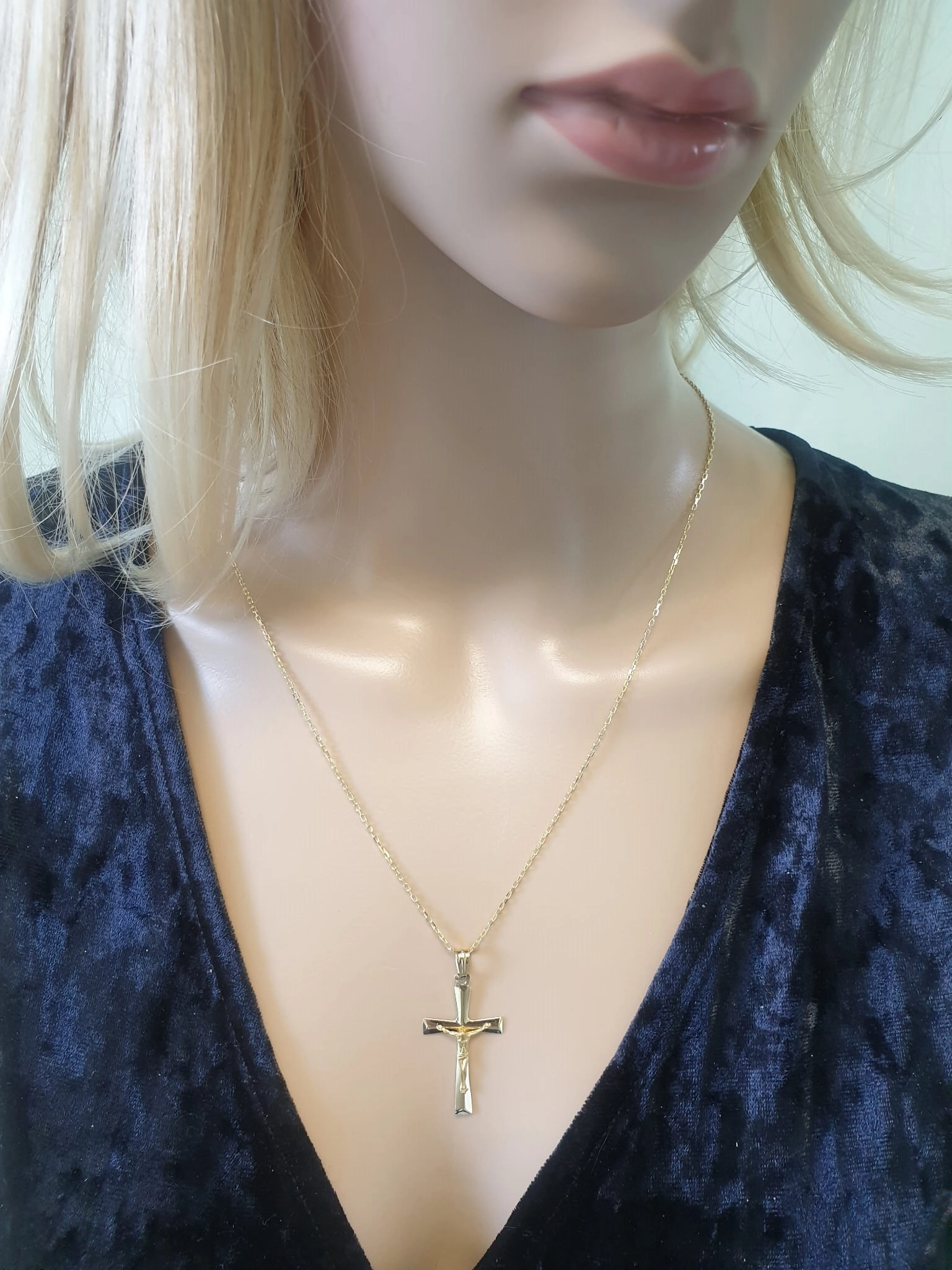 Šis kryželis – tai ne tik papuošalas, bet ir prasminga dovana, tinkanti įvairioms progoms. Jis puikiai tiks kaip įsimintina dovana Krikšto ar Komunijos proga, simbolizuojanti naują pradžią ir dvasinį ryšį. Taip pat tai puikus pasirinkimas tiems, kurie ieško elegantiško ir subtilaus aksesuaro kasdienai. Jo matmenys – 3,4 cm ilgio ir 1,9 cm pločio – užtikrina, kad kryželis atrodys solidžiai, bet ne per daug įkyriai, idealiai derėdamas prie bet kokio stiliaus aprangos. Prie šio kryželio galite lengvai priderinti platų mūsų siūlomų auksinių grandinėlių asortimentą, sukurdami unikalų ir asmeninį komplektą, atspindintį Jūsų individualumą ir skonį.