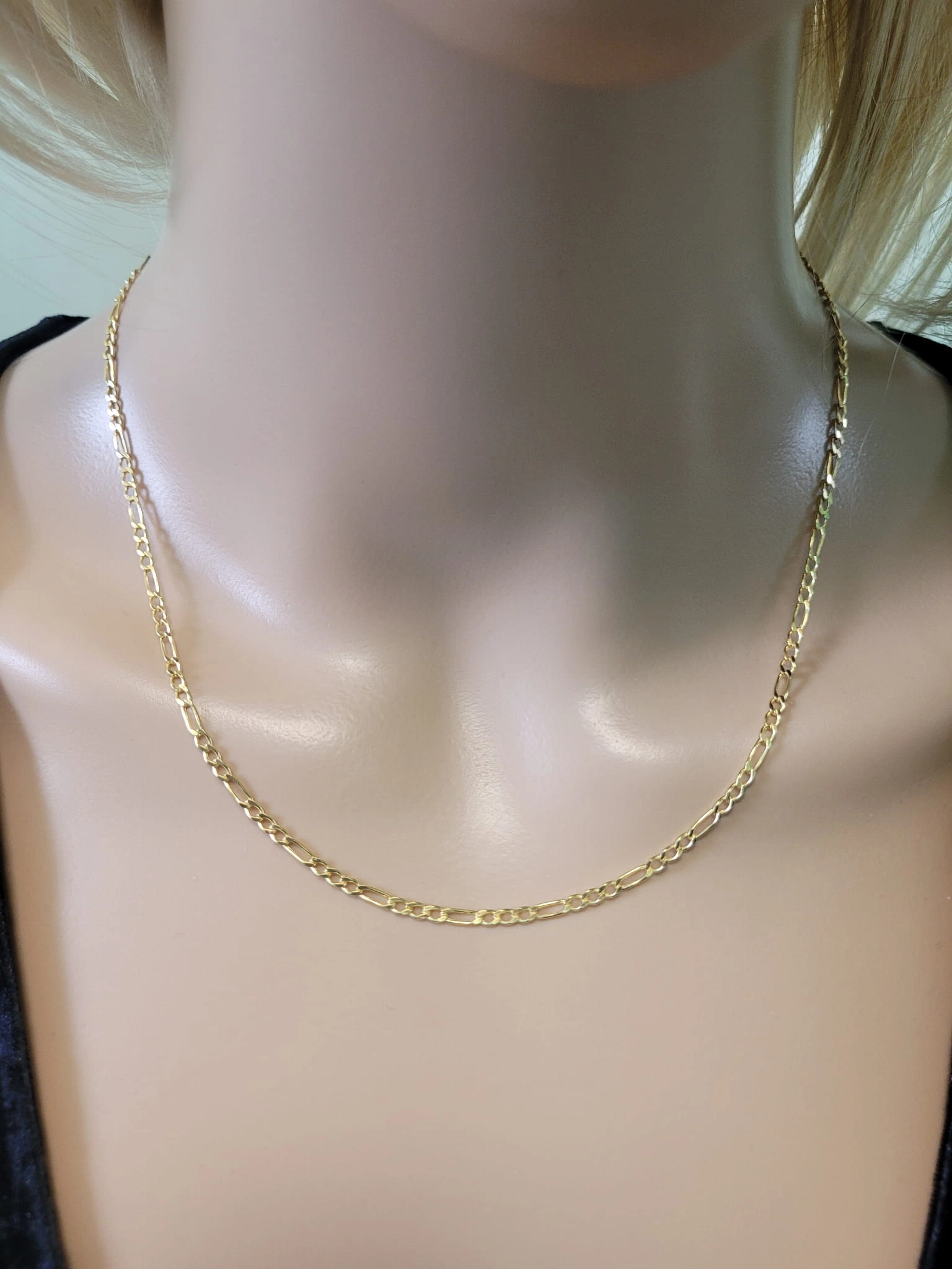Leiskite šiai geltono aukso Figaro grandinėlei tapti jūsų asmeninio stiliaus dalimi, kuri spinduliuos pasitikėjimu ir išskirtinumu. Jos klasikinis dizainas niekada neišeis iš mados, o aukso spindesys džiugins akį ilgus metus.