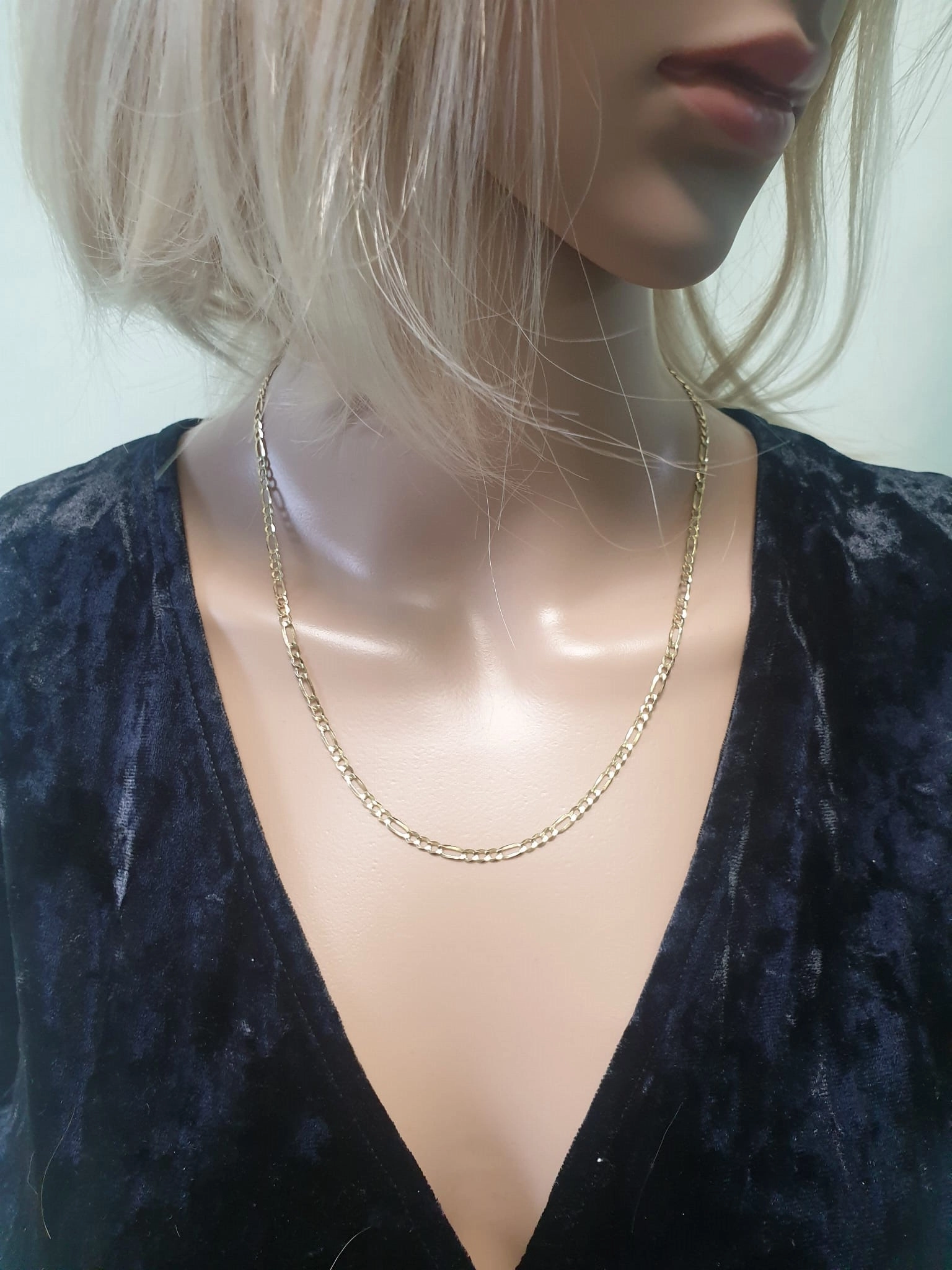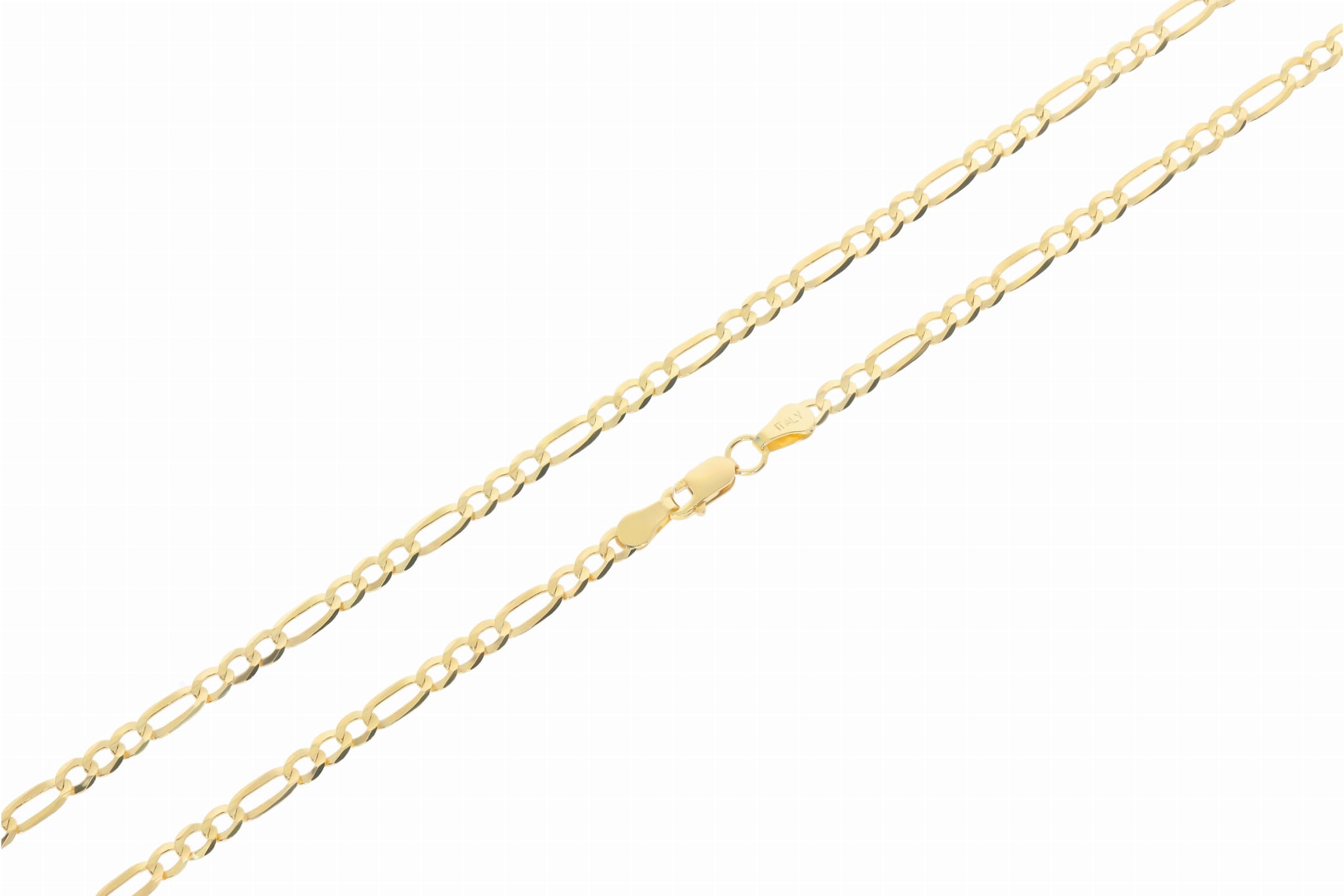 Figaro pynimo grandinėlė pasižymi klasikiniu, tačiau moderniu dizainu, kuriame trys trumpos ovalios grandies jungiasi su viena ilgesne, sukuriančia ritmišką ir akį traukiantį raštą. Ši grandinėlė yra 3,2 mm pločio, todėl ji yra pakankamai masyvi, kad būtų pastebima, tačiau pakankamai subtili, kad tiktų kasdieniam dėvėjimui ar ypatingoms progoms. Kiekviena grandis yra kruopščiai nušlifuota, kad atspindėtų šviesą ir suteiktų prabangos pojūtį.