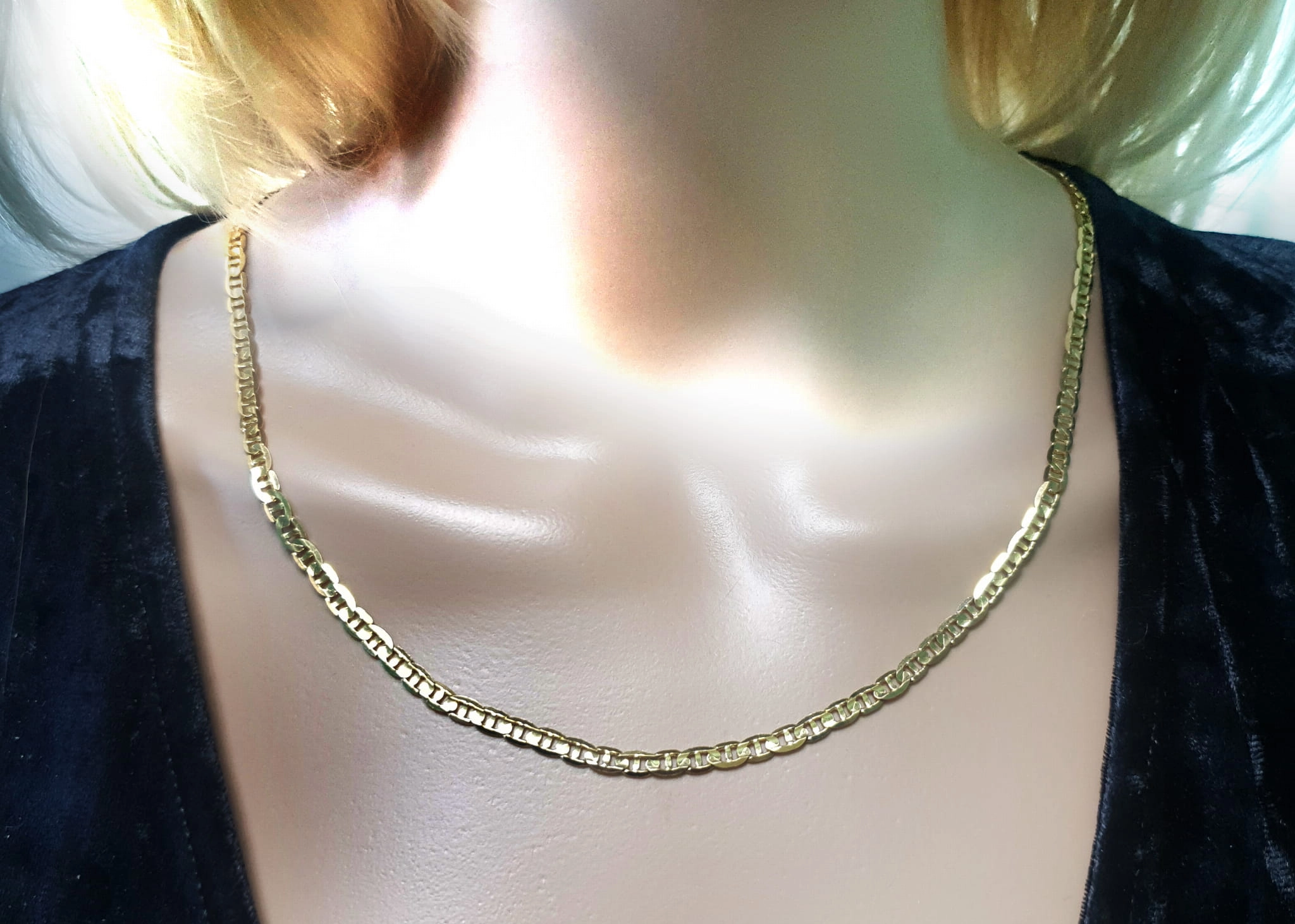 Atraskite nepriekaištingą stilių ir tvirtumą su šia vyriška pilnavidure geltono aukso grandinėle, kuri puikiai papildys bet kurio vyro įvaizdį. Ši grandinėlė, pagaminta iš aukščiausios kokybės 585 prabos geltono aukso, išsiskiria savo klasikiniu, tačiau moderniu Marina pynimu, kuris suteikia jai išskirtinumo ir elegancijos. Kiekviena grandinėlės detalė yra kruopščiai apgalvota ir preciziškai sujungta, užtikrinant ne tik estetinį grožį, bet ir ilgaamžiškumą bei patogumą dėvint.