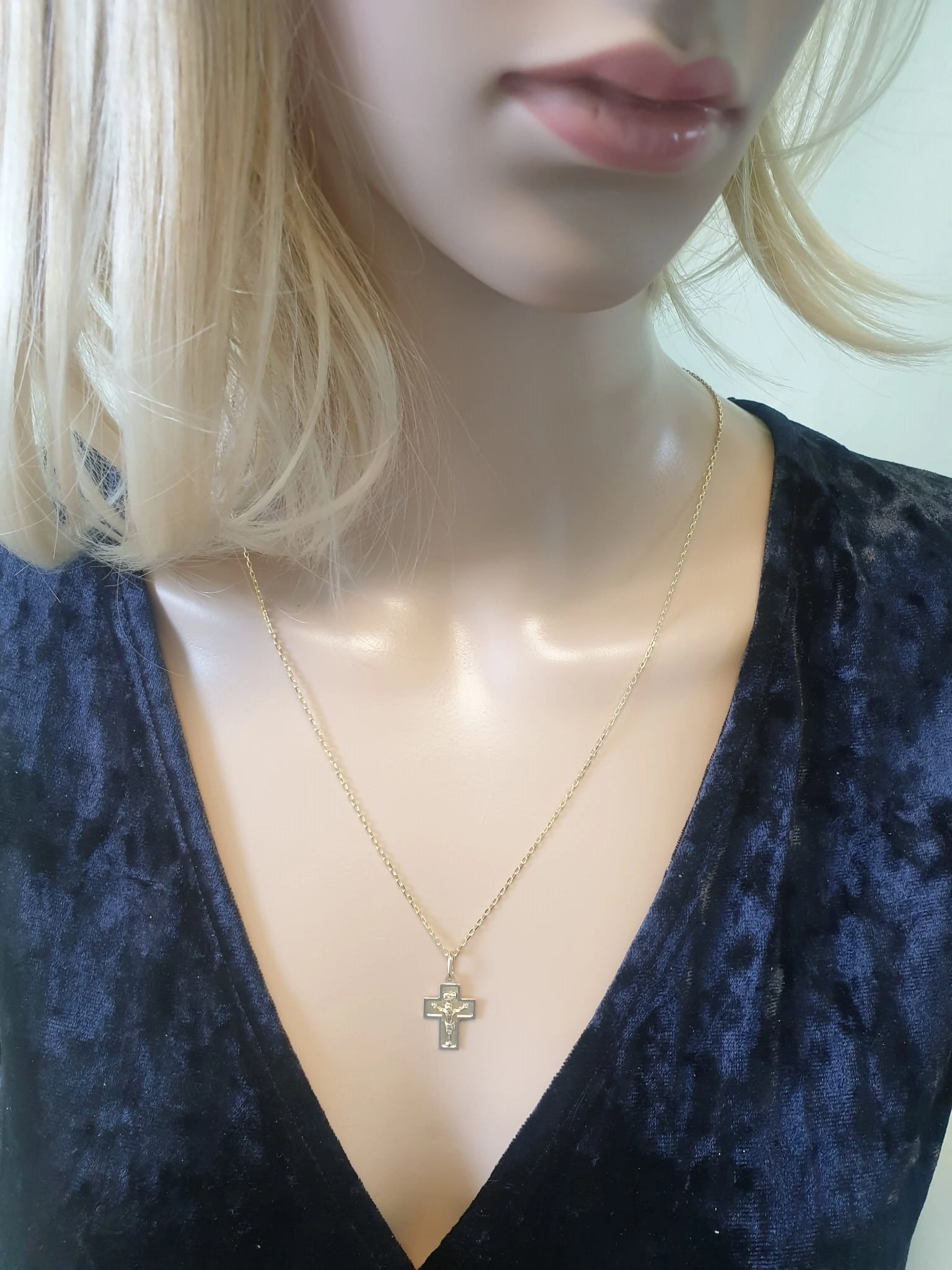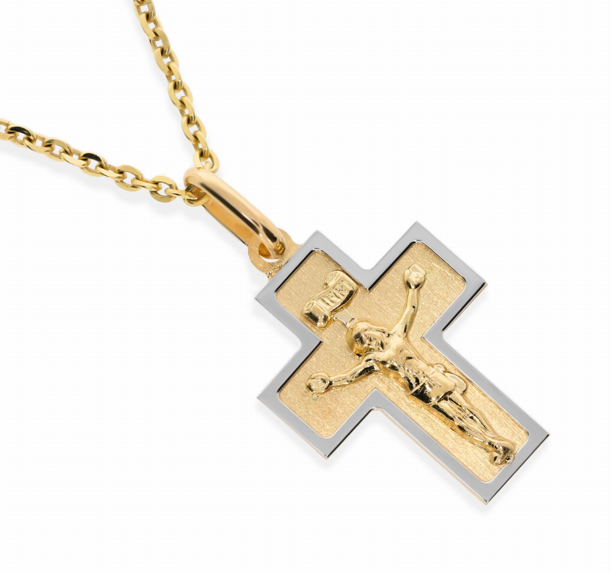 Pristatome išskirtinį dviejų spalvų aukso kryželį, sukurtą su ypatinga aistra ir precizika, kad kiekviena detalė spindėtų. Šis pakabukas – tai ne tik papuošalas, bet ir gilus simbolis, atspindintis tikėjimą ir eleganciją. Pagamintas iš aukščiausios kokybės 585 prabos aukso, jis puikiai derina klasikinį geltoną auksą su moderniu baltu auksu, suteikdamas jam unikalumo ir išskirtinumo. Kryželio centre pavaizduotas Jėzus, o jo paviršius yra subtiliai matinis, sukuriantis išskirtinį kontrastą su blizgančia balto aukso briauna. Šis dizainas pabrėžia papuošalo gilumą ir meninę vertę.